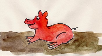Die Schweine erzählten ihren Menschen alles. Doch die Menschen waren gar nicht überrascht! Im Gegenteil: sie wussten noch mehr schreckliche Dinge. Zum Beispiel, dass die meisten Menschen ihre Tiere nur deswegen so dick fütterten, damit sie später einen fetten Braten hatten!